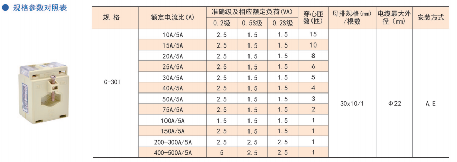 技术要求:额定电流比400A/5A;准确级0.2级;额定负荷2.5VA;穿心匝数1匝;内孔径φ30;母排规格40mm×10mm 1根。