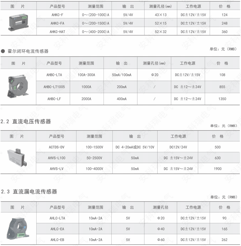 ● 开环霍尔电流传感器