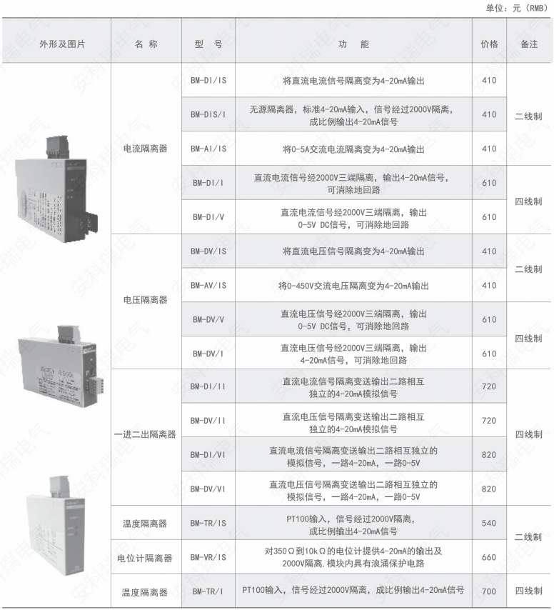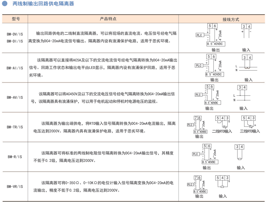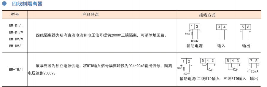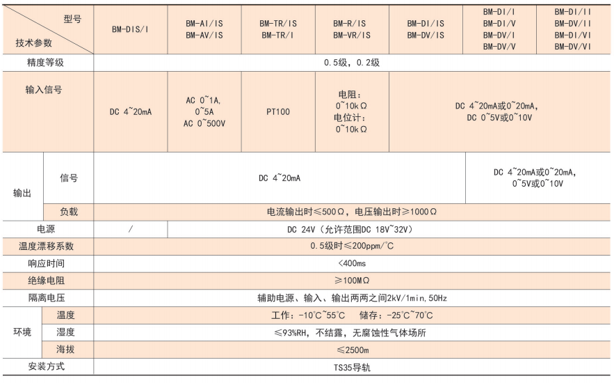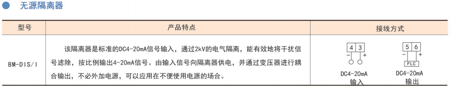 BM系列模拟信号隔离器可以对电流、电压等电量参数或温度、电阻等非电量参数进行高速精确测量,经隔离转换成标准的模拟信号输出。既可直接与指针表、数显表相接,也可以与自控仪表(如PLC)、各种A/D转换器以及计算机系统配接。