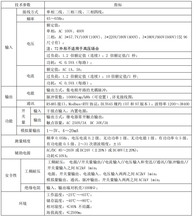 它集成全部电力参数的测量(如单相或者三相的电流、电压、有功功率、无功功率、视在功率、频率、功率因数等)、复费率电能计量、四象限电能计量、谐波分析以及电能监测和考核管理。多种外围接口功能:带有RS485/MODBUS-RTU协议;带开关量输入和继电器输出可实现断路器开关的“遥信”和“遥控”的功能,采用LCD显示界面,通过面板按键来实现参数设置和控制,非常适合于实时电力监控系统。