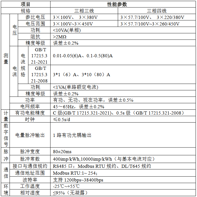 技术要求:输入电压三相AC220/380V;输入电流0.1-0.5(80)A直接接入或3*0.01-0.05(6)A经互感器接入;准确度C级