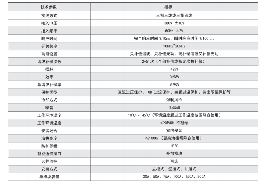 适用于并联在含谐波负载的低压配电系统中,能够对动态变化的谐波电流进行快速实时的跟踪和补偿。
