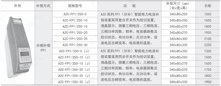 AZC系列智能电力电容补偿装置由智能测控单元、投切开关、线路保护单元、低压电力电容器等构成,改变了传统无功补偿装置体积庞大和笨重的结构模式,是用于节省能源、降低线损、提高功率因数和电能质量的新一代无功补偿设备。
