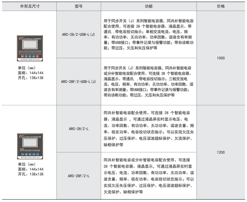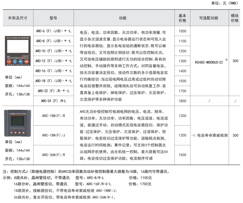 具体型号:ARC-6/J-KT● ARC数码管显示功率因数补偿控制器