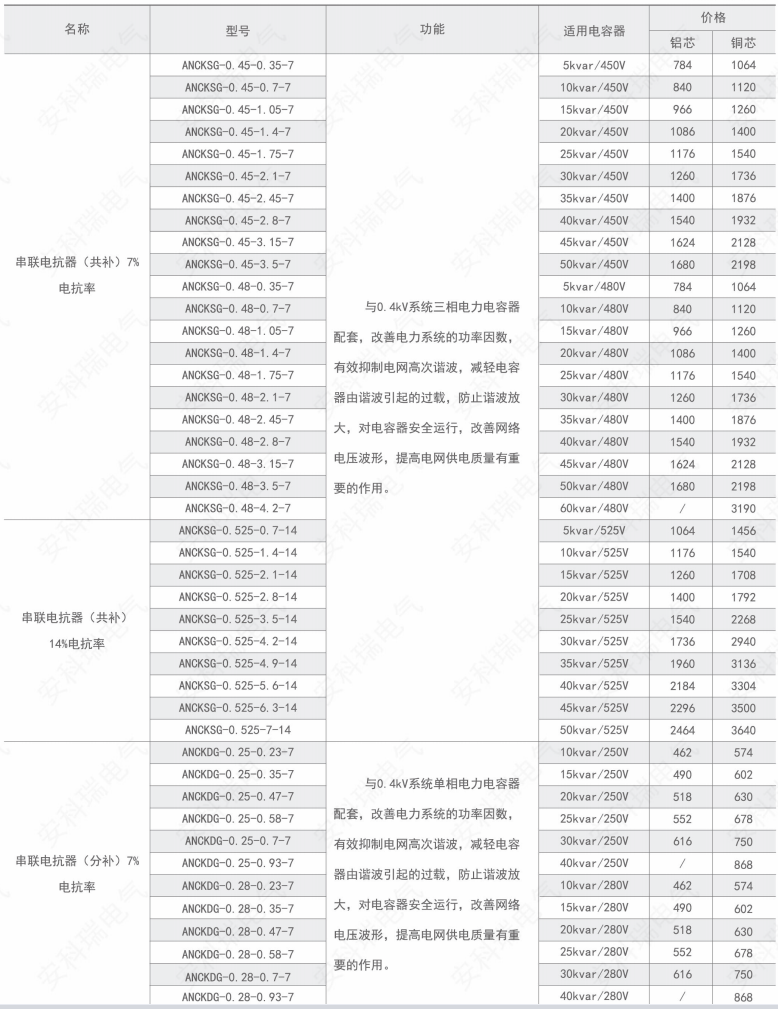 技术要求:适用电容器5kVAR;7%电抗率;铜芯