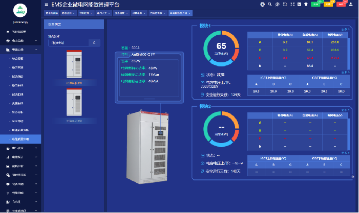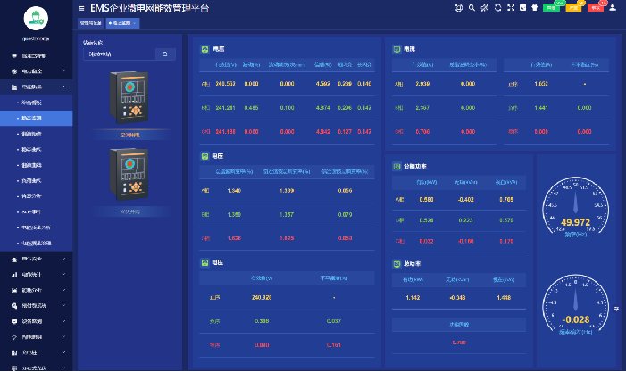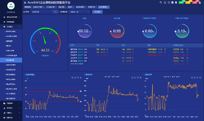 监测变压器、柴油发电机、UPS的电流、电压、有功/无功功率、功率因数、负荷率、温度、三相平衡、异常报警等数据。