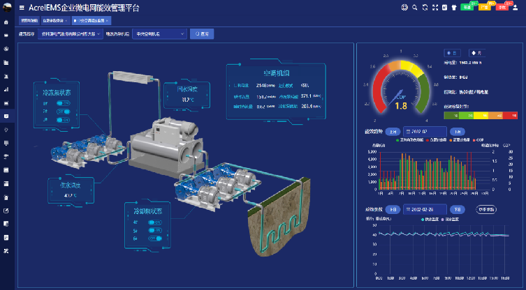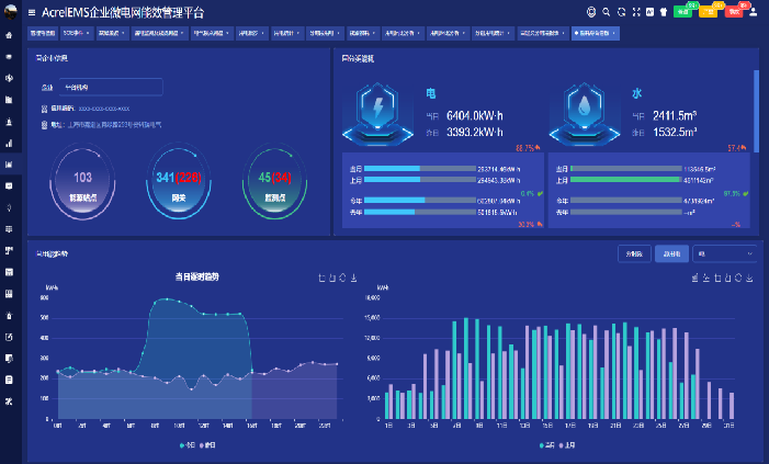 采集医院用电、用水、燃气、冷热量、医疗气体消耗量,同环比对比分析,能耗总量和能耗强度计算,标煤计算和CO2排放统计趋势。