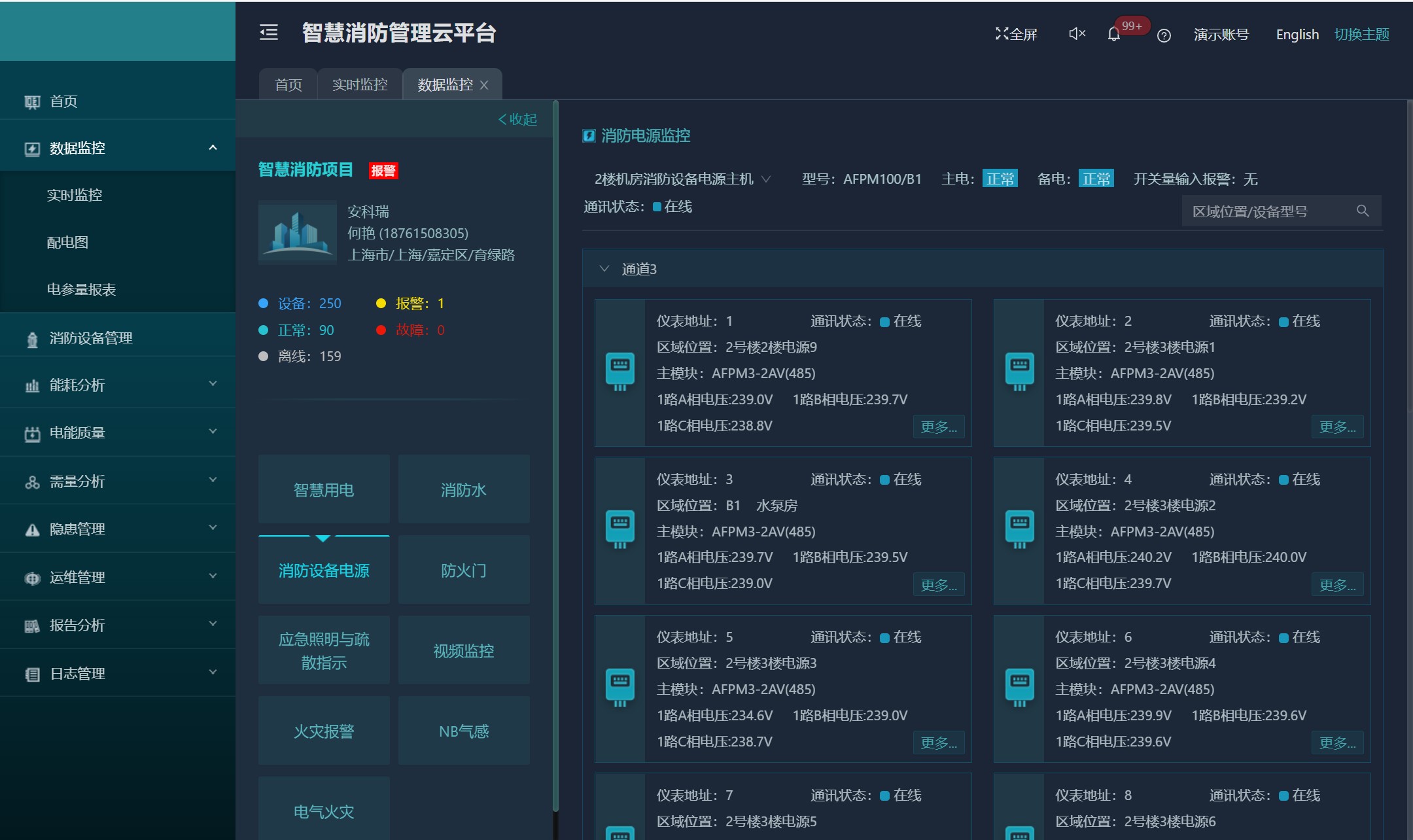 监测消防设备的工作电源是否正常,保障在发生火灾时消防设备可以正常投入使用。